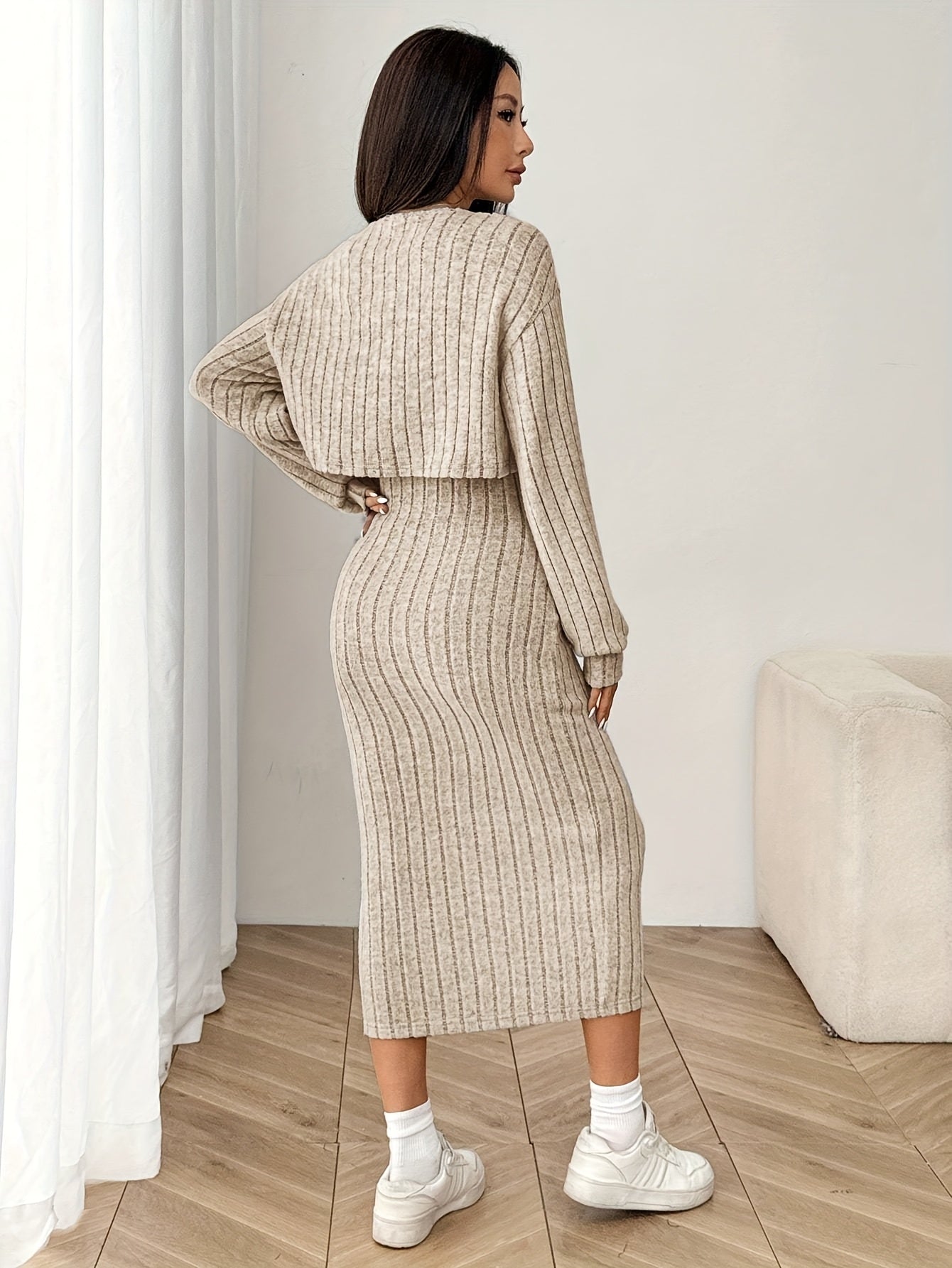 Whether you are heading out for a casual dinner, spending time with family, or enjoying a relaxed day at home, this soft ribbed set gives you a polished look without sacrificing comfort. The gentle stretch and long, flattering shape help you feel confident and comfortable from morning to evening.