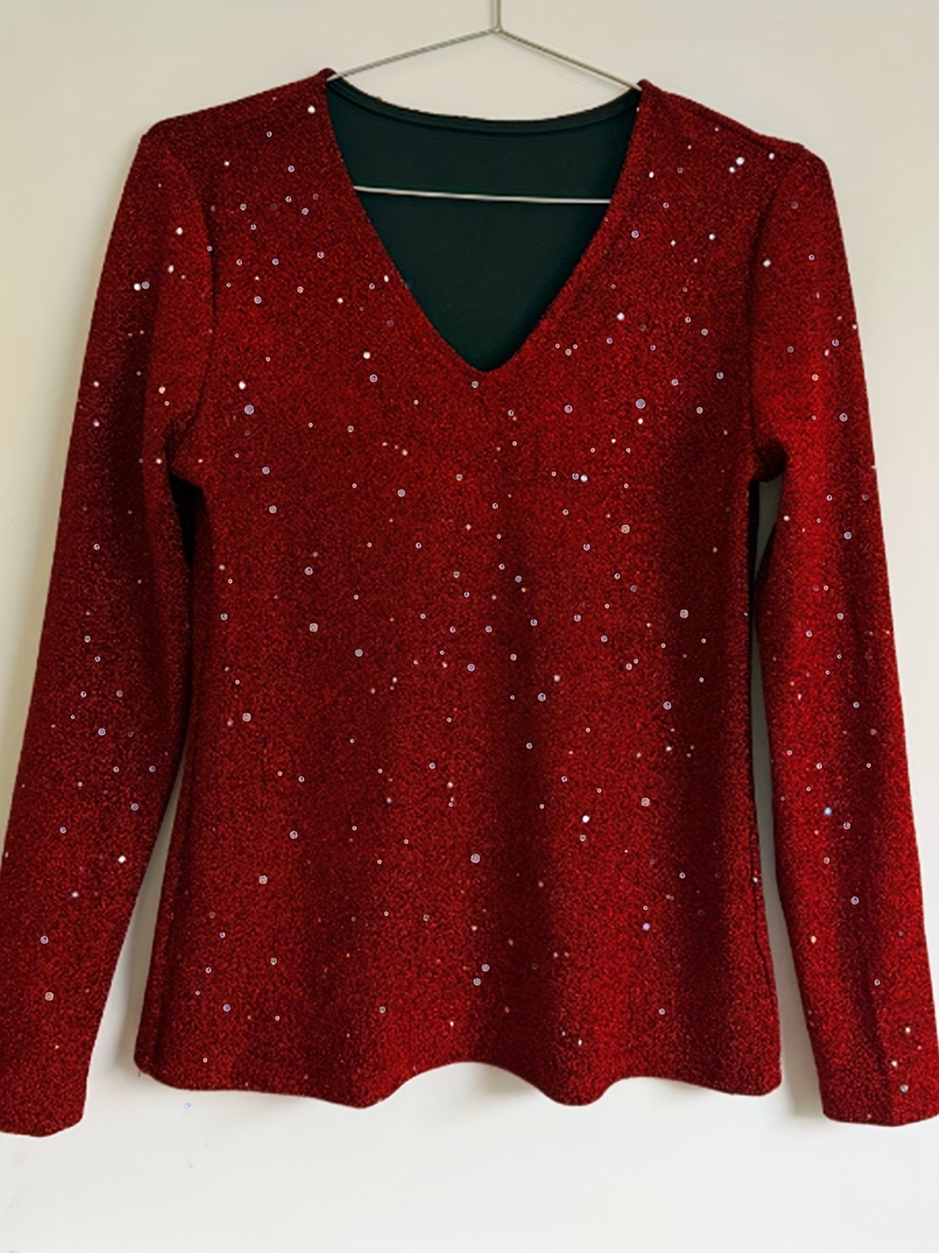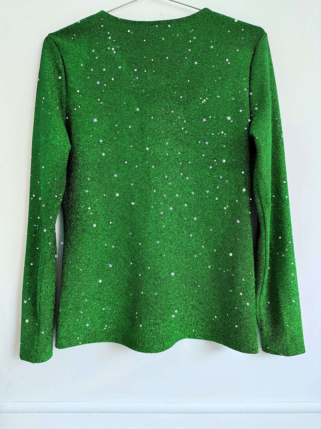 When you want a top that brings sparkle without feeling tight or fussy, this glittered style gives you the perfect balance. It is ideal for dinners, gatherings, holidays, or evenings when you want to feel dressed up but still relaxed. The soft stretch and gentle shape make it easy to wear while the shimmer adds a festive touch.