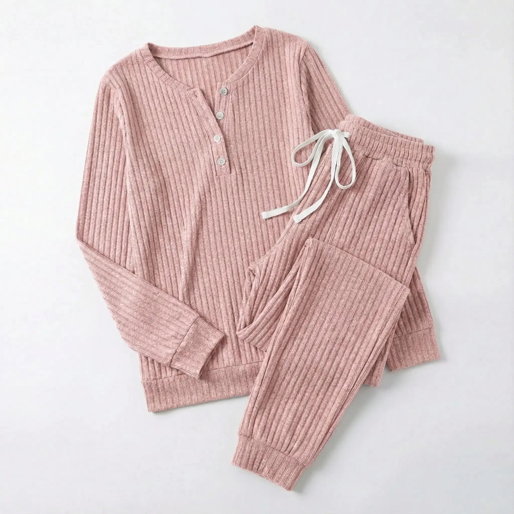 The Naomy set was created for women who want to feel comfortable without looking sloppy. It’s made from a soft, breathable knit that feels smooth on the skin and warms you without overheating. The fabric drapes gently, never clinging in the wrong places, and the fit stays flattering no matter how you sit, move, lounge, or relax.